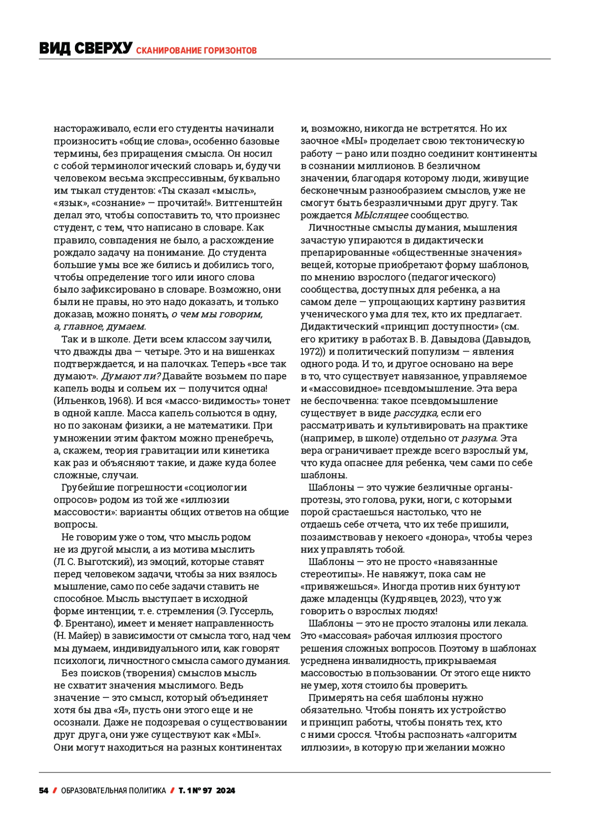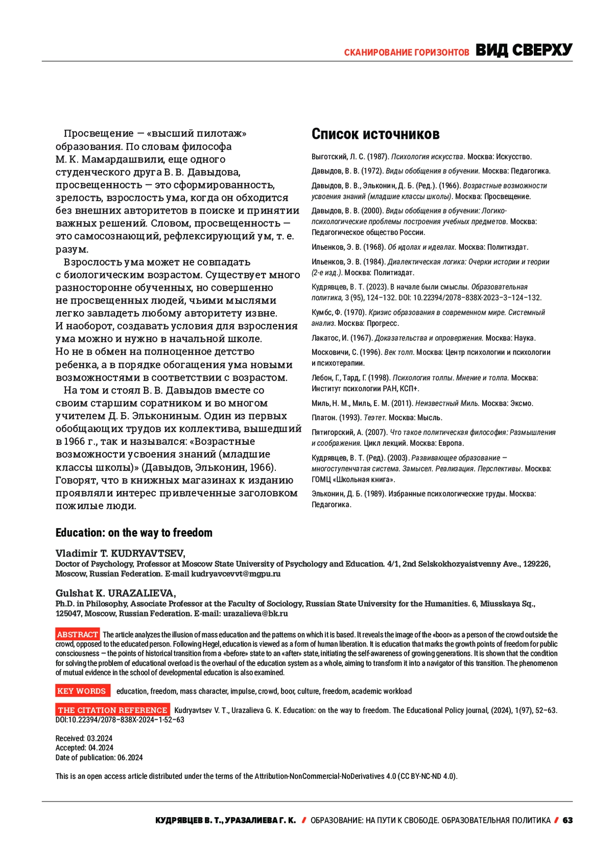 7. Кудрявцев, В. Т. (2023). В начале были смыслы. Образовательная политика, 3 (95), 124-132. Х-2023-3-124-132. DOI: 10.22394/2078-838 EDN: GRFDZG