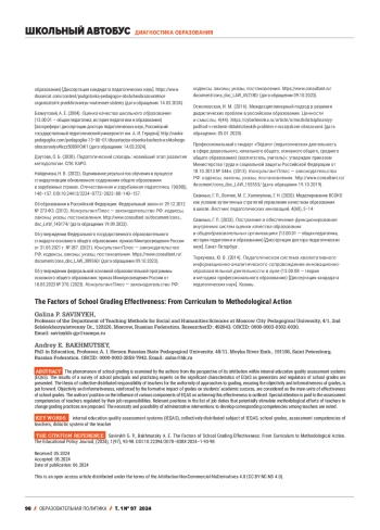 2. Бахмутский, А. Е. (2004). Оценка качества школьного образования (13.00.01 - общая педагогика, история педагогики и образования) [Автореферат диссертации доктора педагогических наук, Российский государственный педагогический университет им. А. И. Герцена]. http://nauka-pedagogika.com/pedagogika-13-00-01/dissertaciya-otsenka-kachestva-shkolnogo-obrazovaniya#ixzz50B0V0rK1 (дата обращения: 14.03.2024). EDN: NMYOYH
