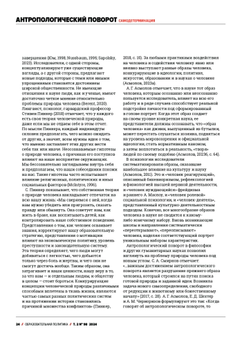 6. Асмолов, А. Г., Рабинович, П. Д., Заведенский, К. Е. (2023). Антропологический поворот: культурные практики содействия развитию сложности Человека. Интеграция образования, 27(4), 591-610. DOI: 10.15507/1991-9468.110.027.202304.591-610 EDN: PJDNGW