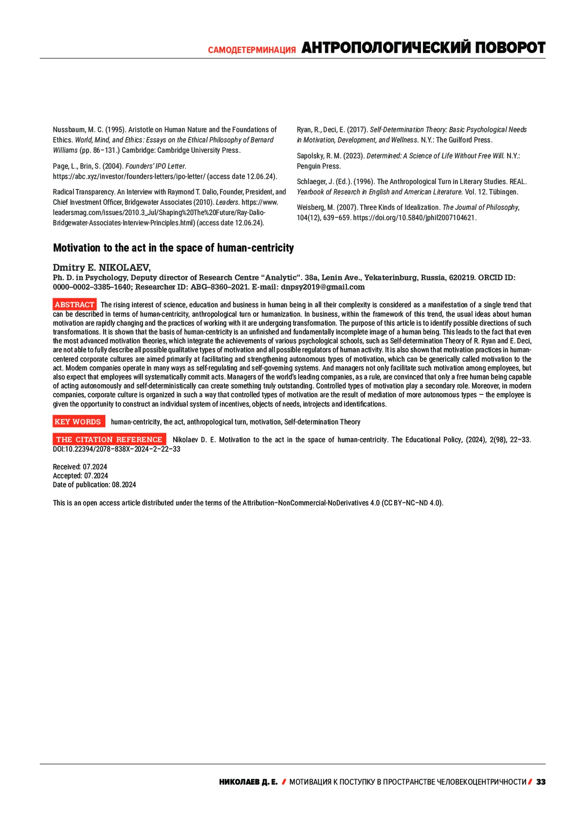 25. Николаев, Д. (2024). Четыре степени свободы: От мотивации персонала к вдохновению соратников. М.: СберУниверситет, Академия потенциала Человека.