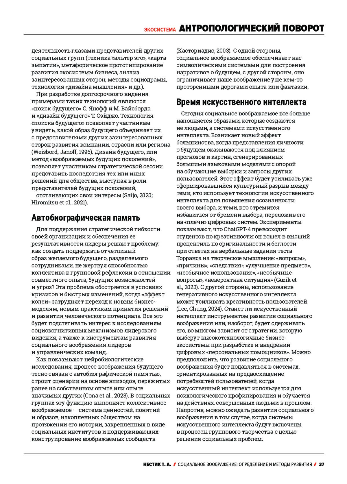 12. Нестик, Т. А. (2023b). Социальное воображение как психологический феномен. Вопросы психологии, 5, 3-15. EDN: ONOCLS