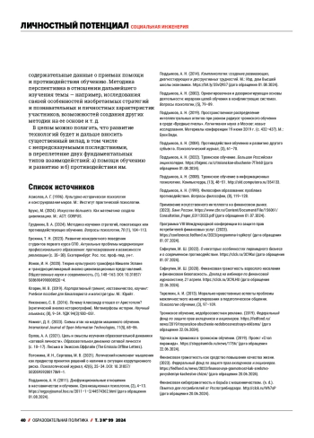 32. Poddiakov, A. N. (2001). Counteraction as a crucial factor of learning, education and development: Opposition to help. Forum: Qualitative Sozialforschung / Forum: Qualitative Social Research, 2(3). https://www.qualitative-research.net/index.php/fqs/article/view/910 (Date of access 15.07.2024). EDN: LGKEQR