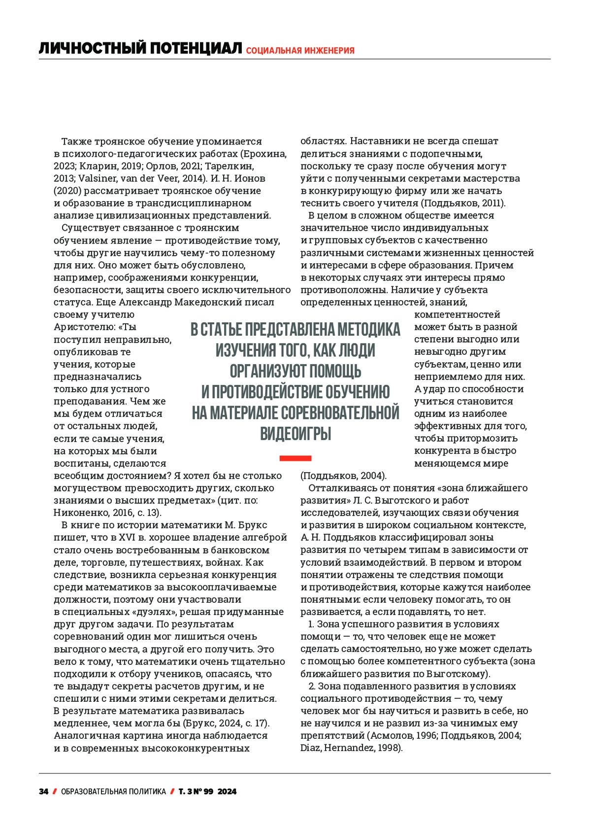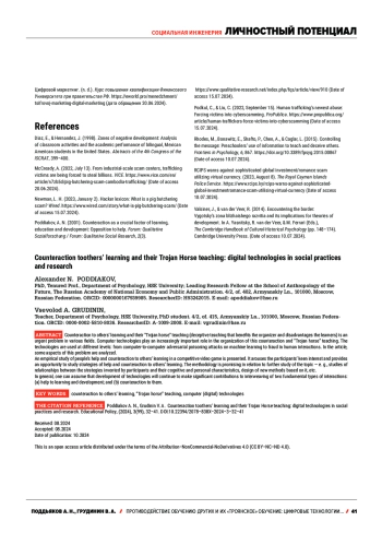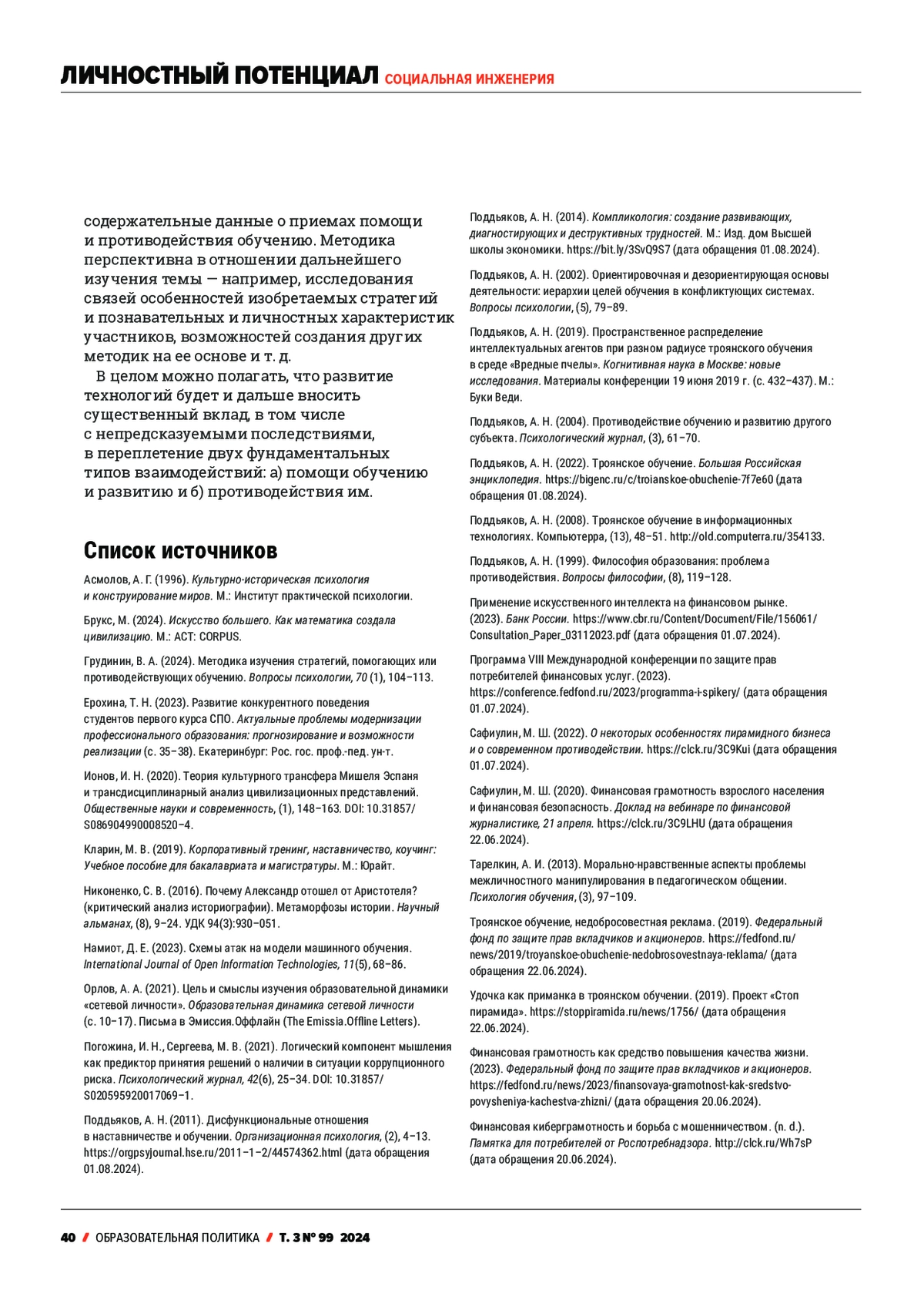 16. Поддьяков, А. Н. (2022). Троянское обучение. Большая Российская энциклопедия. https://bigenc.ru/c/troianskoe-obuchenie-7f7e60 (дата обращения 01.08.2024).