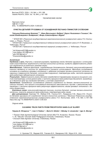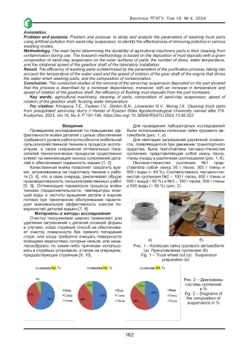 Проблема и цель. Изучить и проанализировать параметры мойки деталей грузовика с использованием искусственного загрязнения из песчано-глинистой суспензии, выявить эффективность удаления загрязнения на различных режимах мойки.
