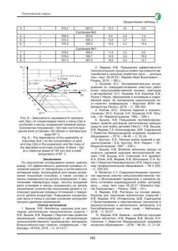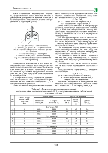 Результат. Эффективность мойки деталей определяется параметрами процесса очищения с учетом температуры используемой воды и частоты вращения вала редуктора двигателя, приводящего в движение воду при промывке деталей, и состава загрязнения.