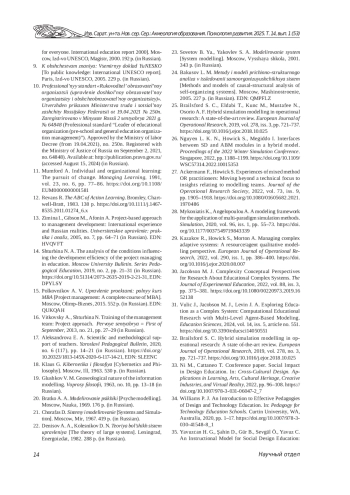 14. Штурбина Н. А. Анализ условий, влияющих на эффективность подготовки кадров для управления проектами в образовании // Вестник Московского университета. Сер. 20. Педагогическое образование. 2019. № 2. С. 21-31. ,. DOI: 10.51314/2073-2635-2019-2-21-31 EDN: DPYLSY