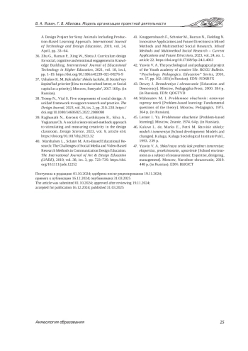 35. Yavuzcan H. G., Şahin D., Gür B., Sevgül Ö., Yavuz C. An Instructional Model for Social Design Education: A Design Project for Stray Animals Including Production-Based Learning Approach // International Journal of Technology and Design Education. 2019. Vol. 24. April. P. 33-64.