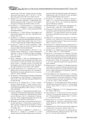 22. Sternberg R. J., Chowkase A., Desmet O., Karami S., Landy J., Lu J. Beyond Transformational Giftedness // Educ. Sci. 2021. Vol. 11, iss. 5. Article 192. DOI: 10.3390/educsci11050192