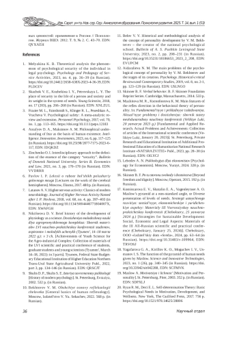 1. Мелякина К. Б. Теоретический анализ феномена психологической безопасности личности в юридической психологии // Психология и педагогика служебной деятельности. 2023. № 4. С. 36-39. ,. DOI: 10.24412/2658-638X-2023-4-36-39 EDN: PLDCEV