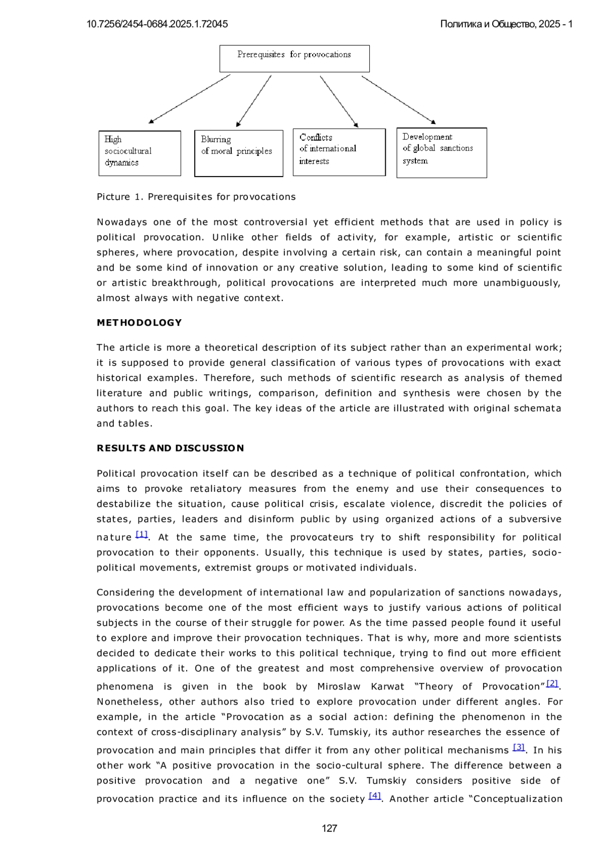 3. Тумский С.В. Провокация как социальное действие: определение феномена в контексте кроссдисциплинарного анализа. // Социодинамика. 2017. № 8. С. 1-11. URL: https://e-notabene.ru/pr/article_23349.html. DOI: 10.25136/2409-7144.2017.8.23349