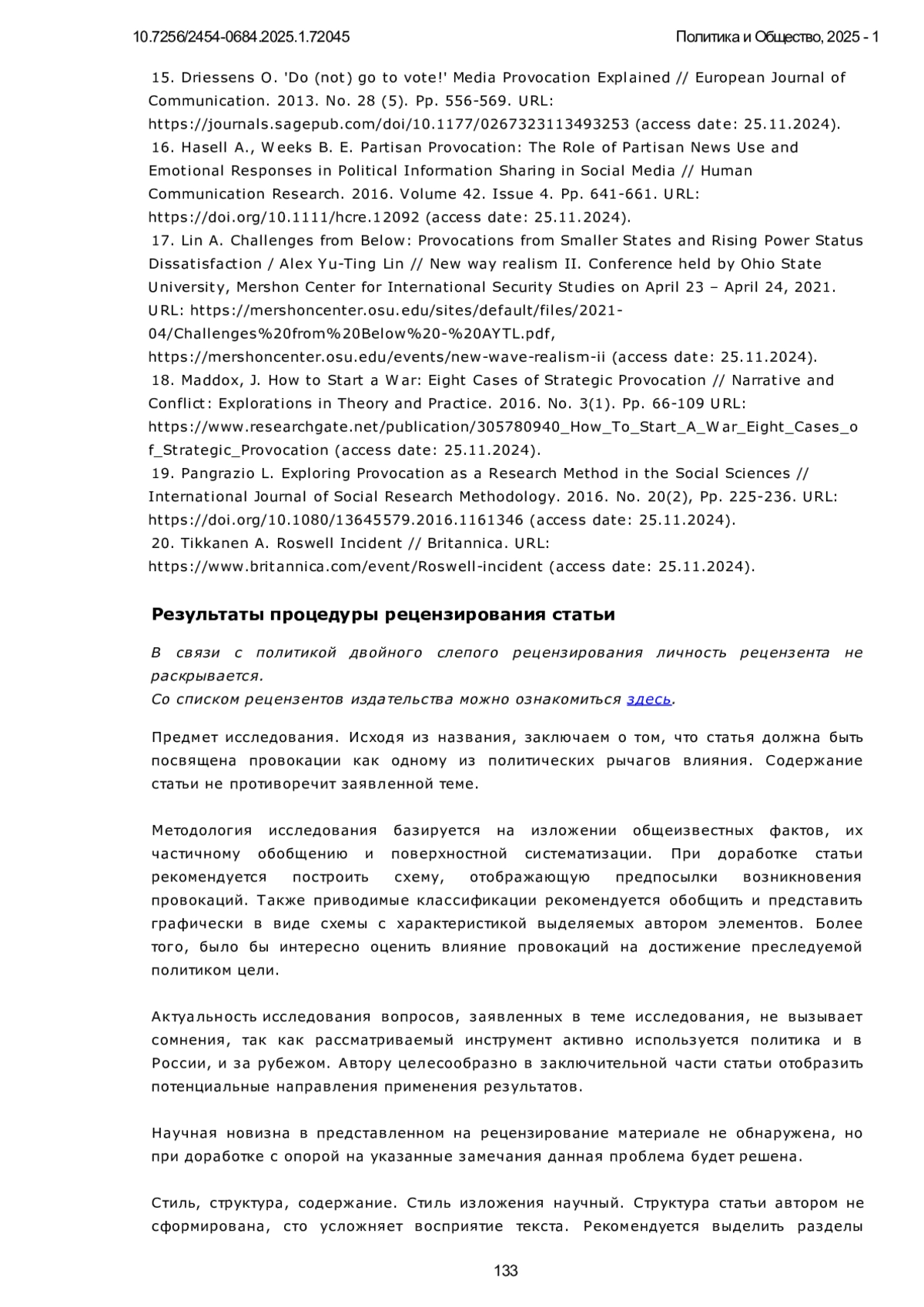 2. Karwat M. Theory of Provocation. In the Light of Political Science // Studies in politics, security and society. 2022. Volume 44. 376 p. URL: https://library.oapen.org/bitstream/handle/20.500.12657/53920/9783631866764.pdf?sequence=1&isAllowed=y#:~:text=A%20political%20provocation%20manifests%20itself,applications%2C%20aims%2C%20and%20much%20more (access date: 25.11.2024).