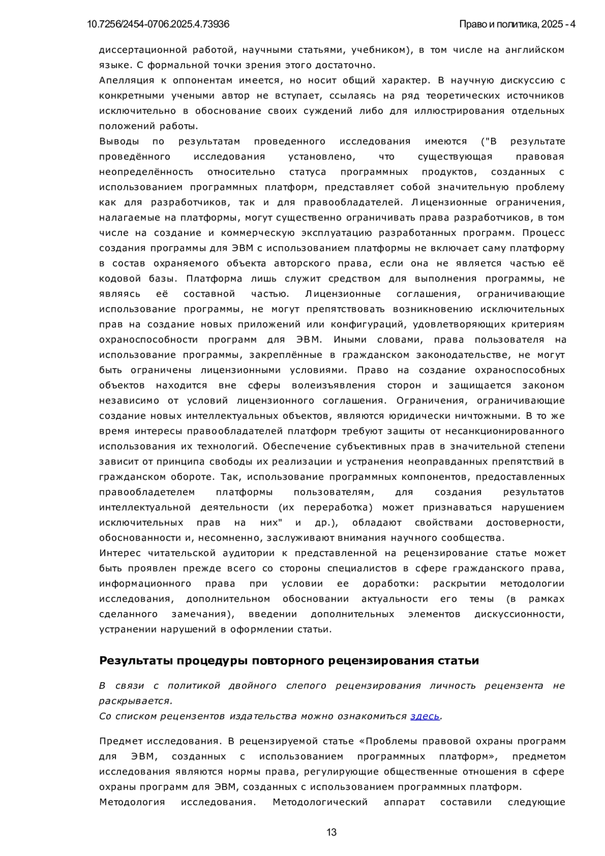 6. Чурилов А. Программа для ЭВМ как особый объект авторского права // Интеллектуальная собственность. Авторское право и смежные права. 2020. N 8. С. 49.