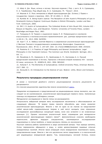 14. Иванов А. Е. Роль эмпиризма в общей юриспруденции Дж. Остина // Право и государство: теория и практика. 2021. № 10 (202). С. 34-36.