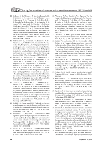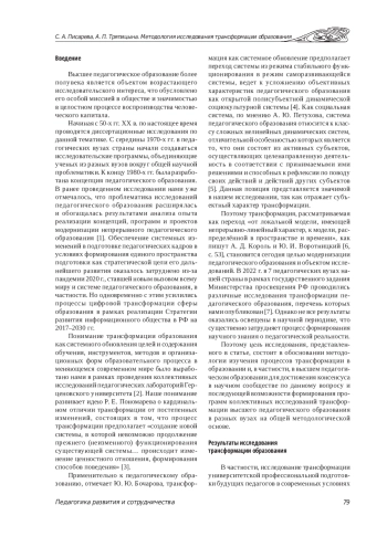 20. Лоренц В. В., Чекалева Н. В. Трансформация школы как источник развития высшего педагогического образования // Вестник педагогических наук. 2022. № 6. С. 116-120. EDN: SNXGHM