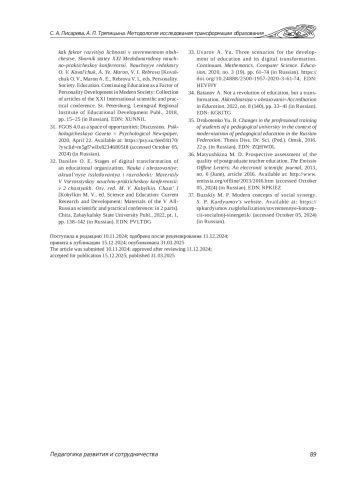 7. Батракова И. С., Глубокова Е. Н., Писарева С. А., Тинкован Е. В. Трансформация подготовки педагога: экспертное мнение преподавателей вузов // Известия Российского государственного педагогического университета им. А. И. Герцена. 2023. № 207. С. 9-20. ,. DOI: 10.33910/1992-6464-2023-207-9-20 EDN: XTTFGB