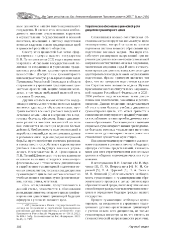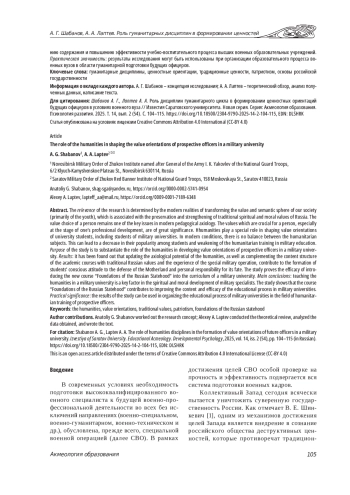 2. Цепенщиков В. А., Петрий П. В. Ценностная роль социально-гуманитарных наук в системе военного образования России // Военный академический журнал. 2024. № 3 (43). С. 5-11. EDN: EEJQDP