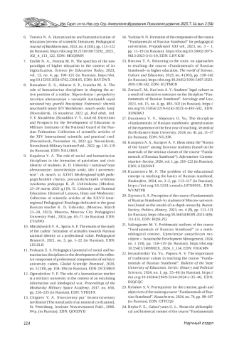 8. Рассаднев Э. С., Сидоров С. П., Иванча М. А. Роль гуманитарных дисциплин в формировании активной позиции военнослужащего // Направления и перспективы развития образования в военных институтах войск национальной гвардии Российской Федерации: сб. науч. ст. XIV Междунар. науч.-практ. конф. (Новосибирск, 16 ноября 2022 г.) / под общ. ред. В. В. Косухина. Новосибирск: Военный институт, 2022. С. 116-119. EDN: NALOHA
