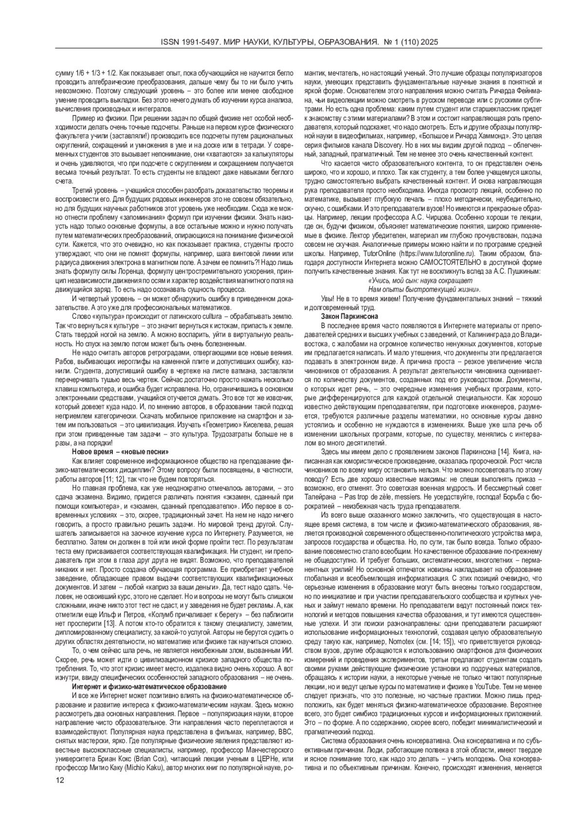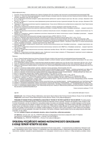 11. Потапова М.В., Щетинин А.Н. О физике и математике в программе высшего образования. Мир науки. Педагогика и психология. 2023; Т 11, № 4. Available at: https://mir-nauki.com/PDF/12PDMN423.pdf. DOI: 10.15862/12PDMN423 EDN: JYEMFJ