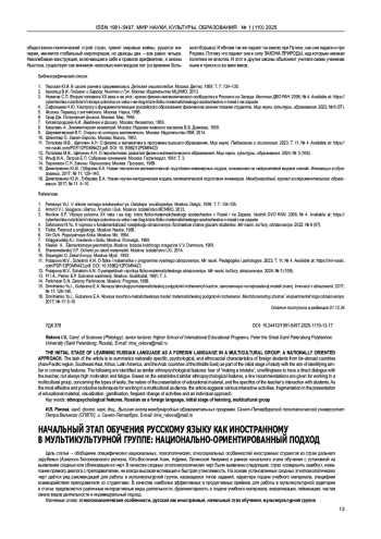 3. Рыжова Н.И., Башмакова Н.И. Поликультурная образовательная среда: генезис и определение понятия. Научное обозрение. Педагогические науки. 2015; № 3. Available at: https://science-pedagogy.ru/ru/article/view?id=1221.