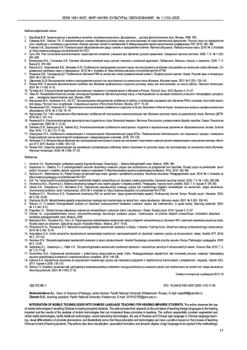Данная статья посвящена вопросу использования мобильных технологий в обучении слабослышащих китайскому языку. Свое исследование авторы основывают на принципах обучения слабослышащих иностранным языкам и результатах анализа мобильных технологий, которые способны реализовать данные принципы в обучении. Последовательно рассматриваются технологии дополненной и виртуальной реальности, технологии тактильной обратной связи, технологии социальных сетей, использование русского и китайского жестового языка в обучении китайскому языку, визуальную дифференциацию фонетических явлений и иллюстративно доказывается то, что указанные принципы и технологии способны оказать положительное влияние на процесс обучения слабослышащих китайскому языку. Авторы также привлекают визуальную наглядность, формирование ассоциаций и динамическое отображение жестового языка к применению в методике обучения китайскому языку слабослышащих обучающихся. Представленные данные позволяют сделать вывод, что использование мобильных технологий способно повысить эффективность обучения слабослышащих китайскому языку. Результаты исследования можно использовать при разработке методик обучения слабослышащих китайскому языку.