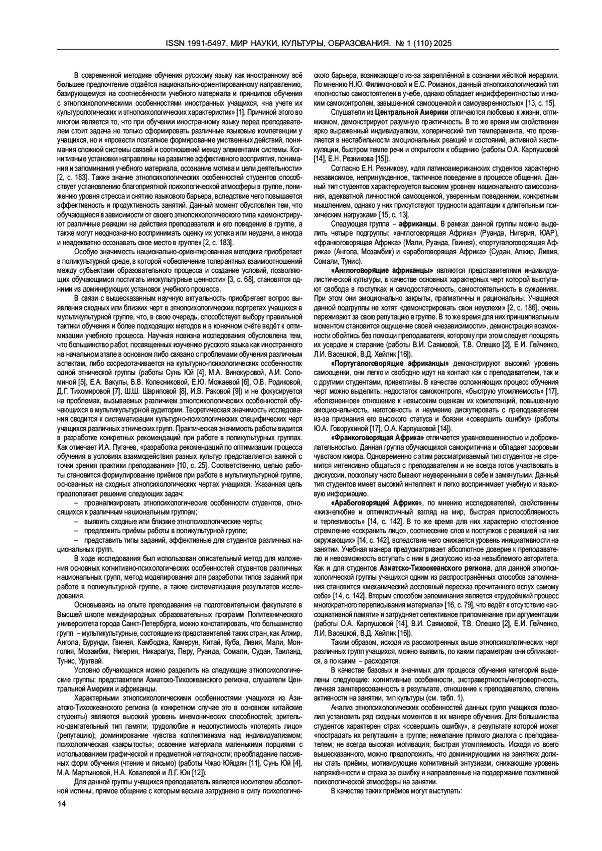 16. Гейченко Е.И., Васецкая Л.И., Хейлик В.Д. Этнопсихологические особенности иностранных студентов и национальные различия их образовательных систем. Science Rise. 2015; Т 2, № 1 (7): 77-82. EDN: TLCJVR