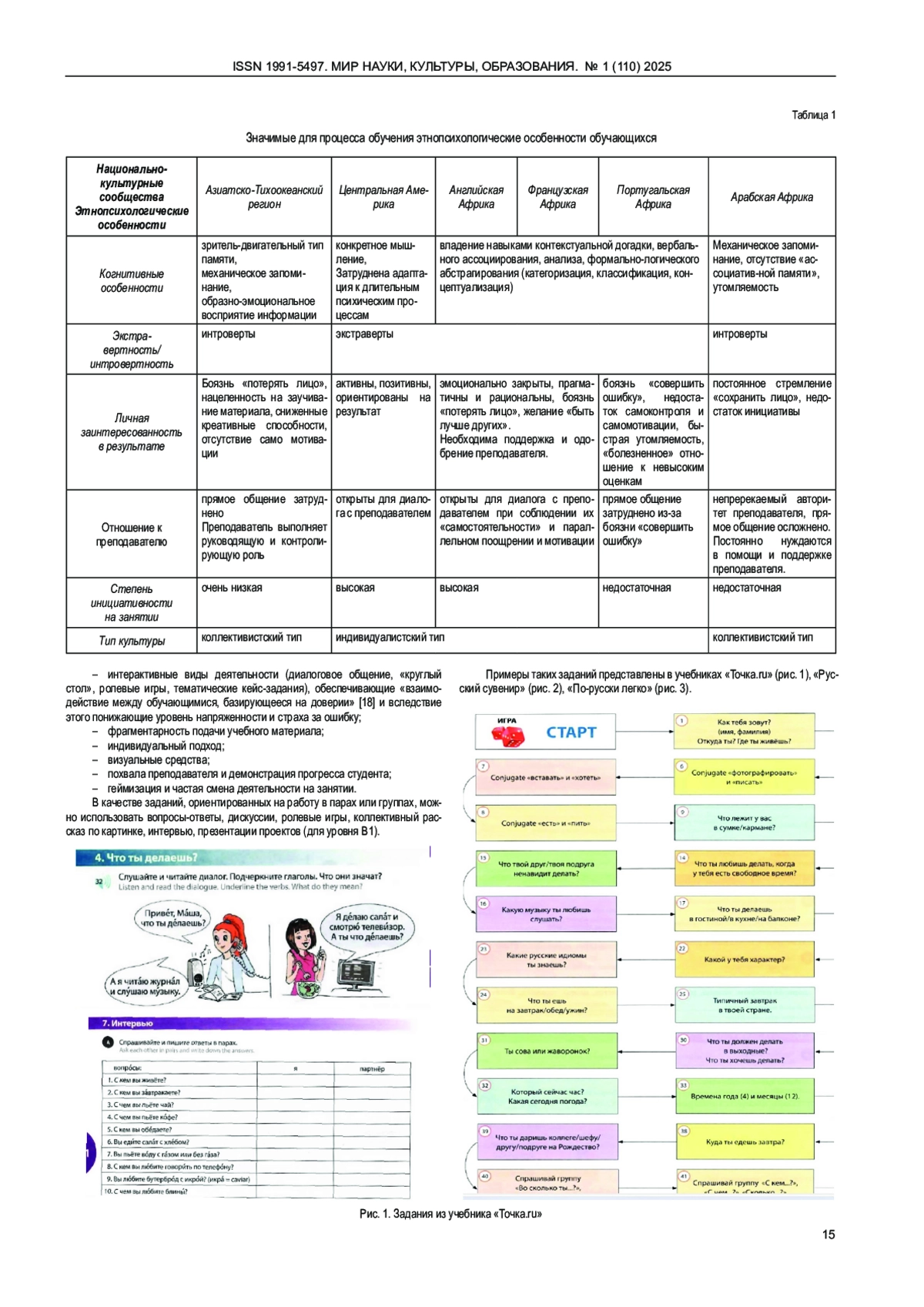 В современной методике обучения русскому языку как иностранному всё большее предпочтение отдаётся национально-ориентированному направлению, базирующемуся на соотнесённости учебного материала и принципов обучения с этнопсихологическими особенностями иностранных учащихся, «на учете их культурологических и этнопсихологических характеристик» [1].