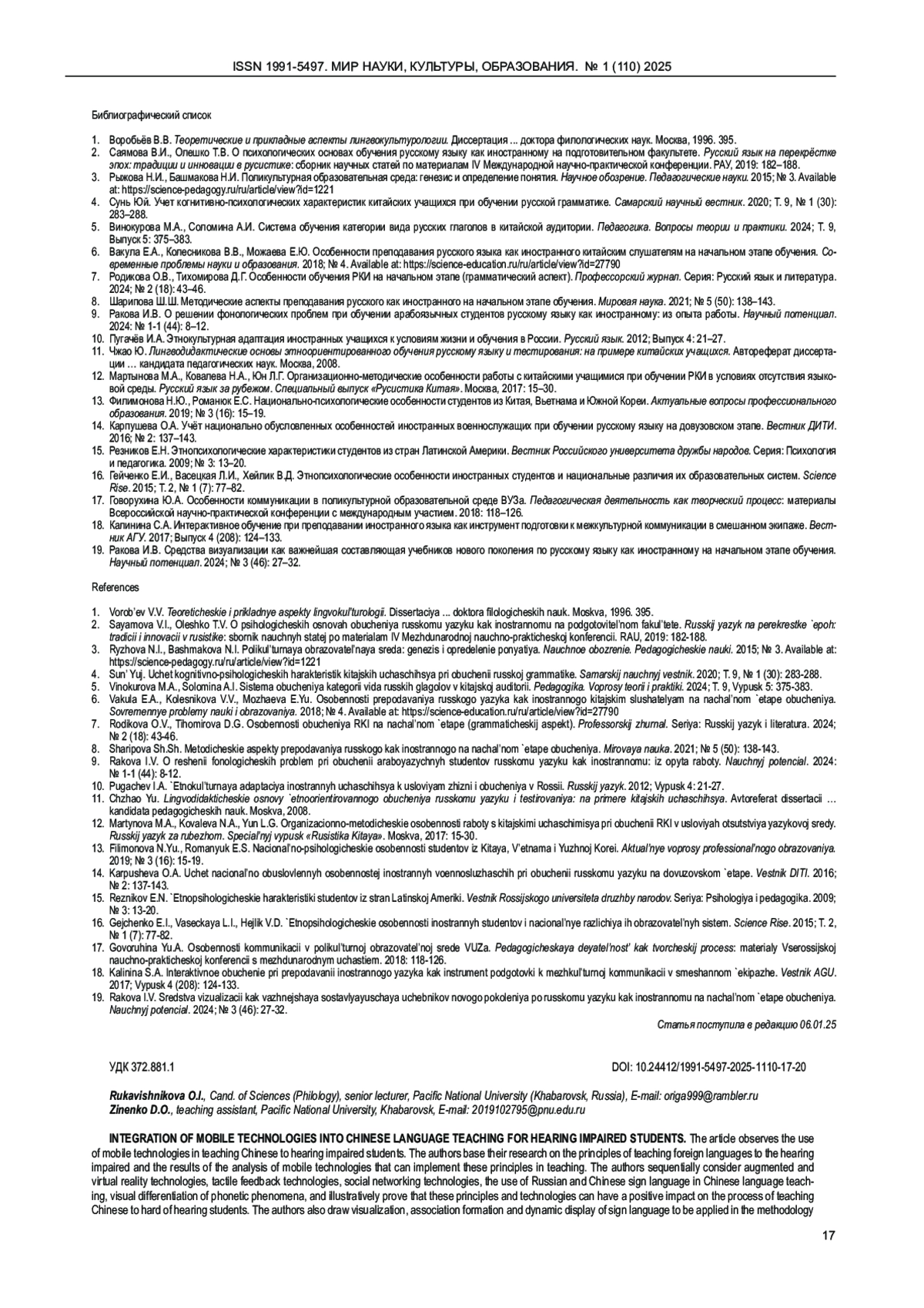 9. Ракова И.В. О решении фонологических проблем при обучении арабоязычных студентов русскому языку как иностранному: из опыта работы. Научный потенциал. 2024: № 1-1 (44): 8-12. EDN: PQTODY