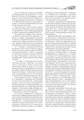 24. Кононенко И. О., Вишнякова Н. Н., Малюткина Е. П. Выраженность стресса и тревоги у студентов в период вспышки COVID-19 // Психология. Историко-критические обзоры и современные исследования. 2021. Т. 10, № 5А. С. 217-224. ,. DOI: 10.34670/AR.2021.94.68.029 EDN: FLOEXS