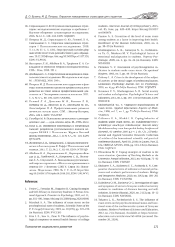 11. Оленникова М. В. Копинг - стратегии студентов в ситуации экзамена // Вопросы методики преподавания в вузе: ежегодный сборник. 2015. № 4 (18). С. 75-83. EDN: VBJXZF
