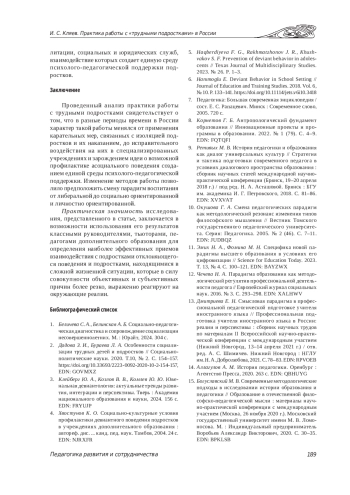 3. Клейберг Ю. А., Козлов В. В., Комлев Ю. Ю. Ювенальная девиантология: актуальные тренды развития, интеграции и перспективы. Тверь: Академия национального образования и науки, 2024. 156 с. EDN: FRYUJP