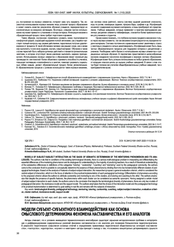 Авторы отмечают, что в условиях имеющегося терминологического многообразия существует серьезная методологическая проблема в интерпретации и дифференцировании содержательных различий феномена наставничества и его аналогов для понимания большинством педагогов-практиков. В результате теоретического осмысления основных отличий в определениях применяемых педагогической общественностью категорий «наставничество», «тьюторство», «кураторство», «коучинг» и «менторинг» авторы приходят к выводу о том, что возможно концептуально детерминировать сущности этих феноменов, разделив их на два принципиально отличающихся друг от друга кластера педагогических технологий. На основе анализа особенностей субъект-субъектного взаимодействия авторами предложен общий критерий оценивания, в качестве которого рассматривается центральный субъект взаимодействия, находящийся в фокусе внимания при практической реализации каждой педагогической технологии. Дифференцирование феноменов по предложенному критерию позволило авторам отнести к одному из кластеров наставничество, кураторство и менторинг, а к другому тьюторство и коучинг Авторы подчеркивают, что, несмотря на наличие специфических особенностей, феномены внутри каждого кластера можно рассматривать как смысловые синонимы. Поставив в соответствие каждому кластеру определенную модель субъект-субъектного взаимодействия, авторы приходят к выводу что, несмотря на терминологическое разнообразие феноменов, существует лишь две модели педагогического взаимодействия: доминации и сопровождения. Авторы акцентируют внимание на том, что выбор модели взаимодействия и педагогической технологии ее практической реализации определяется целеполаганием в реальной жизнедеятельности и остается за субъектами взаимодействия.