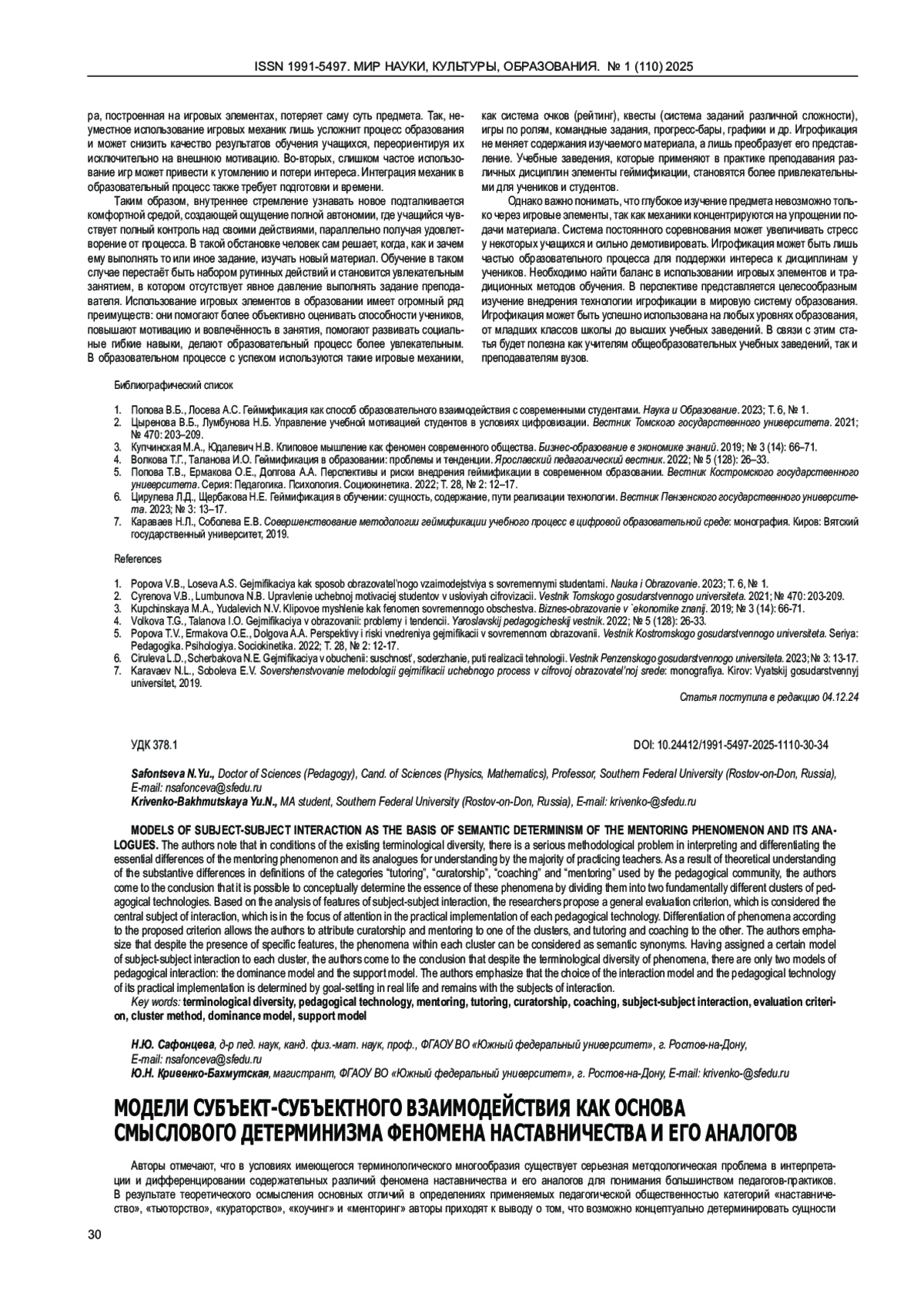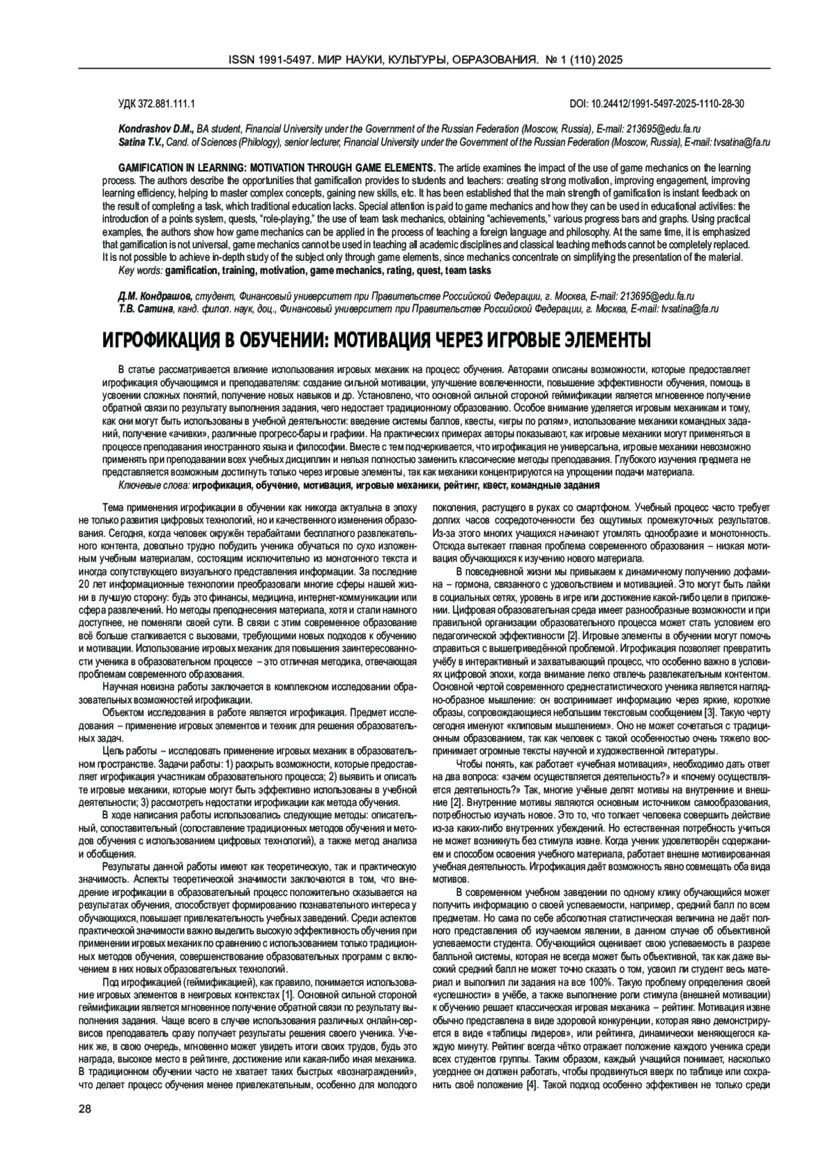 4. Волкова Т.Г, Таланова И.О. Геймификация в образовании: проблемы и тенденции. Ярославский педагогический вестник. 2022; № 5 (128): 26-33. EDN: HGGYTN