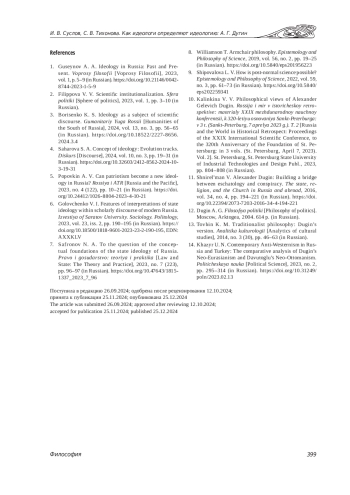 4. Сахарова С. А. Концепт идеологии: треки эволюции // Дискурс. 2024. Т. 10, № 3. С. 19-31. DOI: 10.32603/2412-8562-2024-10-3-19-31 EDN: ISXGCF
