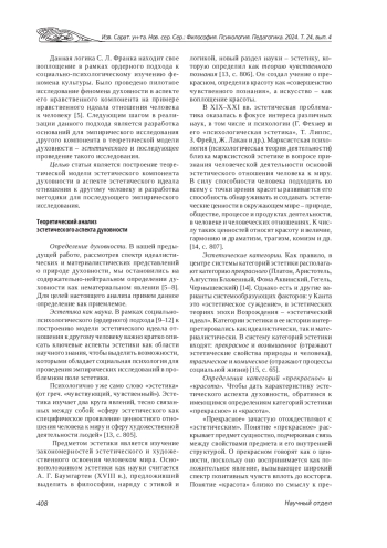 18. Апенок (Черкасова) Р. С. Эстетическая компонента духовности как источник психологического здоровья // Социально-экономические явления и процессы. 2015. Т. 10, № 7. С. 249-254. EDN: UMCKLJ