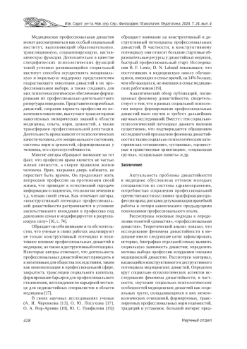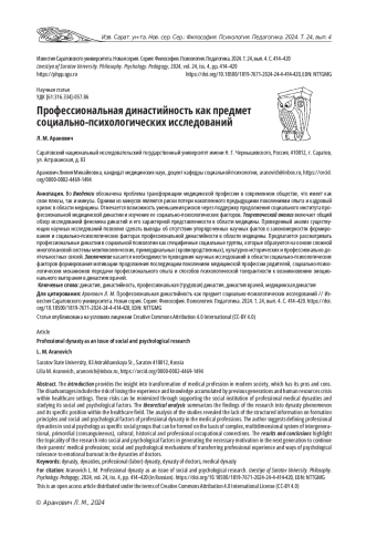 18. Нор-Аревян О. А. Династийность как ресурс успешной карьеры в представлениях нединастийных медиков (на материалах эмпирического исследования) // Гуманитарий Юга России. 2021. № 5. С. 132-143. EDN: TGHMXH