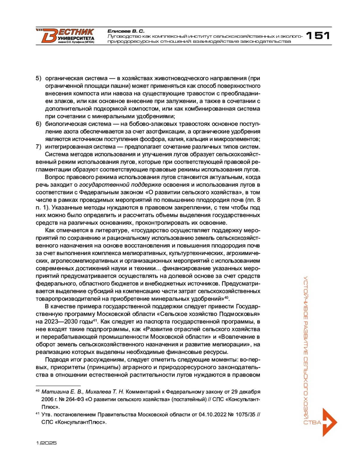 6. Матигина Е. В., Михалева Т. Н. Комментарий к Федеральному закону от 29 декабря 2006 г. № 264-ФЗ «О развитии сельского хозяйства» (постатейный) // СПС «КонсультантПлюс».
