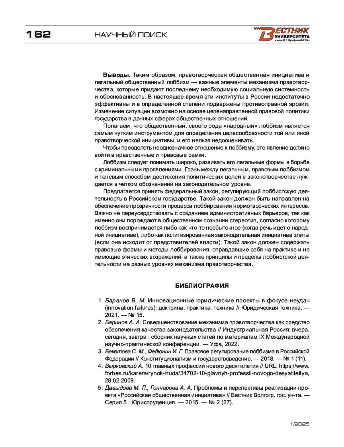 2. Баринов А. А. Совершенствование механизма правотворчества как средство обеспечения качества законодательства // Индустриальная Россия: вчера, сегодня, завтра : сборник научных статей по материалам IX Международной научно-практической конференции. - Уфа, 2022.