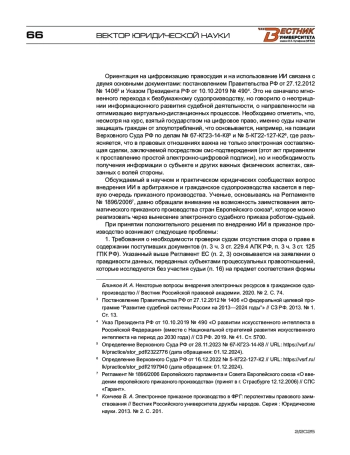 12. Яковлева А. П., Блинков И. А. Некоторые вопросы внедрения электронных ресурсов в гражданское судопроизводство // Вестник Российской правовой академии. - 2020. - № 2. - С. 72-78. - URL: https://doi.org/10.33874/2072-9936-2020-0-2-72-78.