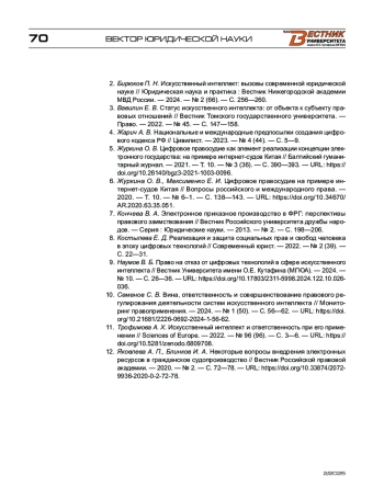 2. Бирюков П. Н. Искусственный интеллект: вызовы современной юридической науке // Юридическая наука и практика : Вестник Нижегородской академии МВД России. - 2024. - № 2 (66). - С. 256-260.