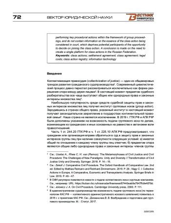6. Alexander J. C. An Introduction to Class Action Procedure in the United States. Debates over Group Litigation in Comparative Perspective. - 2000. - P. 1-26.