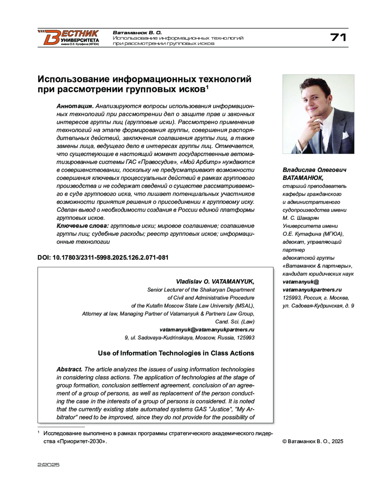 - 10.17803/2311-5998.2025.126.2.071-081