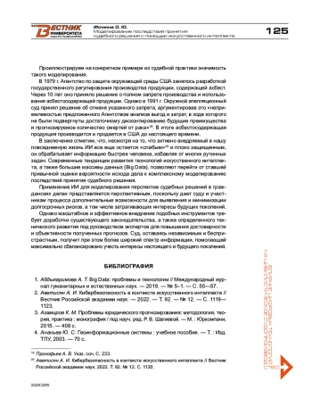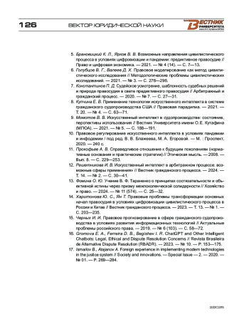 8. Купчина Е. В. Применение технологии искусственного интеллекта в системе гражданского судопроизводства США // Правовая парадигма. - 2021. - Т. 20. - № 4. - С. 63-71.