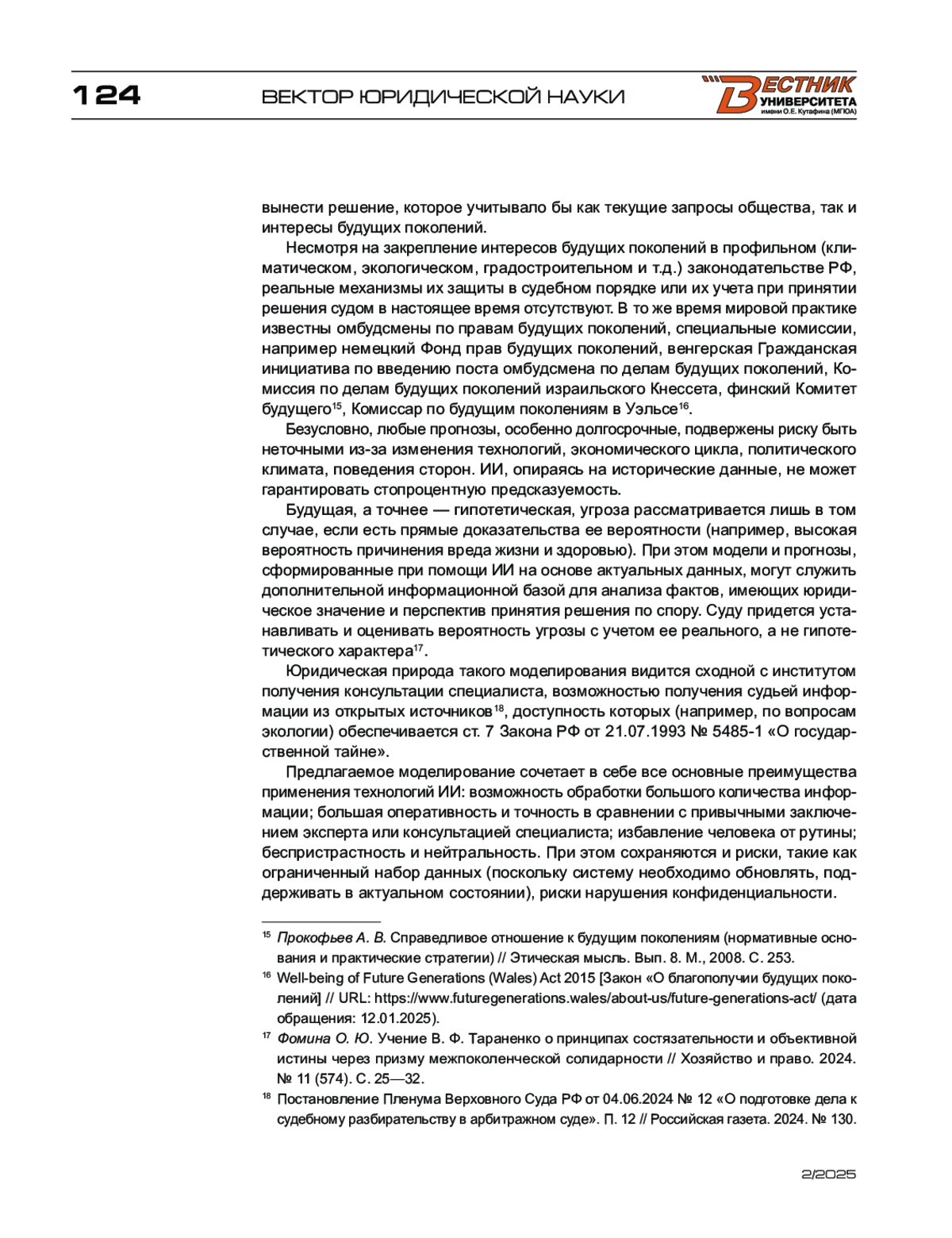 15. Черных И. И. Правовое прогнозирование в сфере гражданского судопроизводства в условиях развития информационных технологий // Актуальные проблемы российского права. - 2019. - № 6 (103). - С. 58-72.