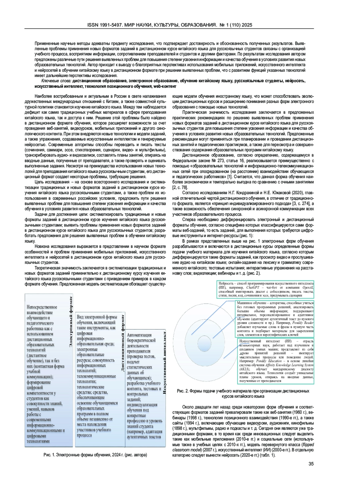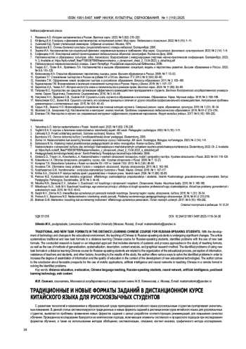 С развитием технологий и изменениями в образовательной среде преподавание китайского языка русскоязычным студентам претерпевает значительные изменения. В данной статье систематизируются традиционные и новые форматы заданий в дистанционном курсе китайского языка для русскоязычных студентов, выявляются проблемы применения новых форматов заданий с целью разработки соответствующих рекомендаций для повышения качества обучения. Проведенное исследование базируется на комплексном подходе, включающем элементы системного и процессного подходов при исследовании форматов обучения, а также на использовании методов обобщения, систематизации, описания, контент-анализа, графического метода исследования. Примененные научные методы адекватны предмету исследования, что подтверждает достоверность и обоснованность полученных результатов. Выявленные проблемы применения новых форматов заданий в дистанционном курсе китайского языка для русскоязычных студентов связаны с организацией учебного процесса, восприятием информации, сопротивлением преподавателей и студентов и другими факторами. По результатам исследования автором предложены различные пути решения выявленных проблем для повышения степени усвоения информации и качества обучения в условиях развития новых образовательных технологий. Автор приходит к выводу о благоприятных перспективах использования мобильных приложений, искусственного интеллекта и нейросетей в обучении китайскому языку в дистанционном формате при решении выявленных проблем, что с развитием функций указанных технологий имеет дальнейшие перспективы исследования.