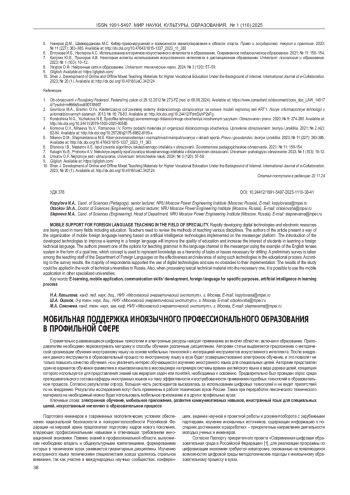 13. Козловцева Н.А. Искусственный интеллект в обучении русскому языку как иностранному: опыт финансового университета. Мир науки, культуры, образования. 2023; № 6 (103): 28-31. EDN: WZSYYS