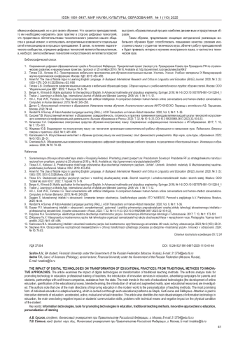 1. Стариченко Б.Е. Цифровизация образования: иллюзии и ожидания. Педагогическое образование в России. 2020; № 3: 49-58.