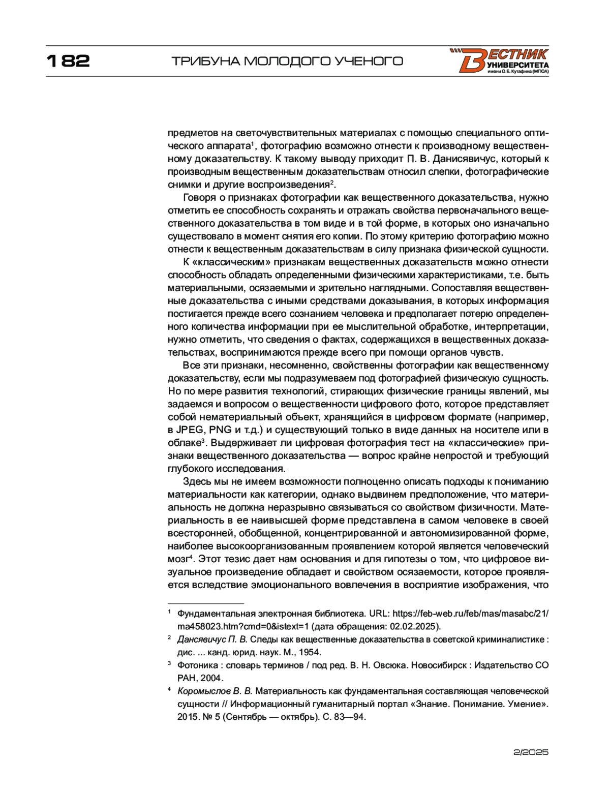 2. Данисявичус П. В. Следы как вещественные доказательства в советской криминалистике : дис. ... канд. юрид. наук. - М., 1954. - 315 с.