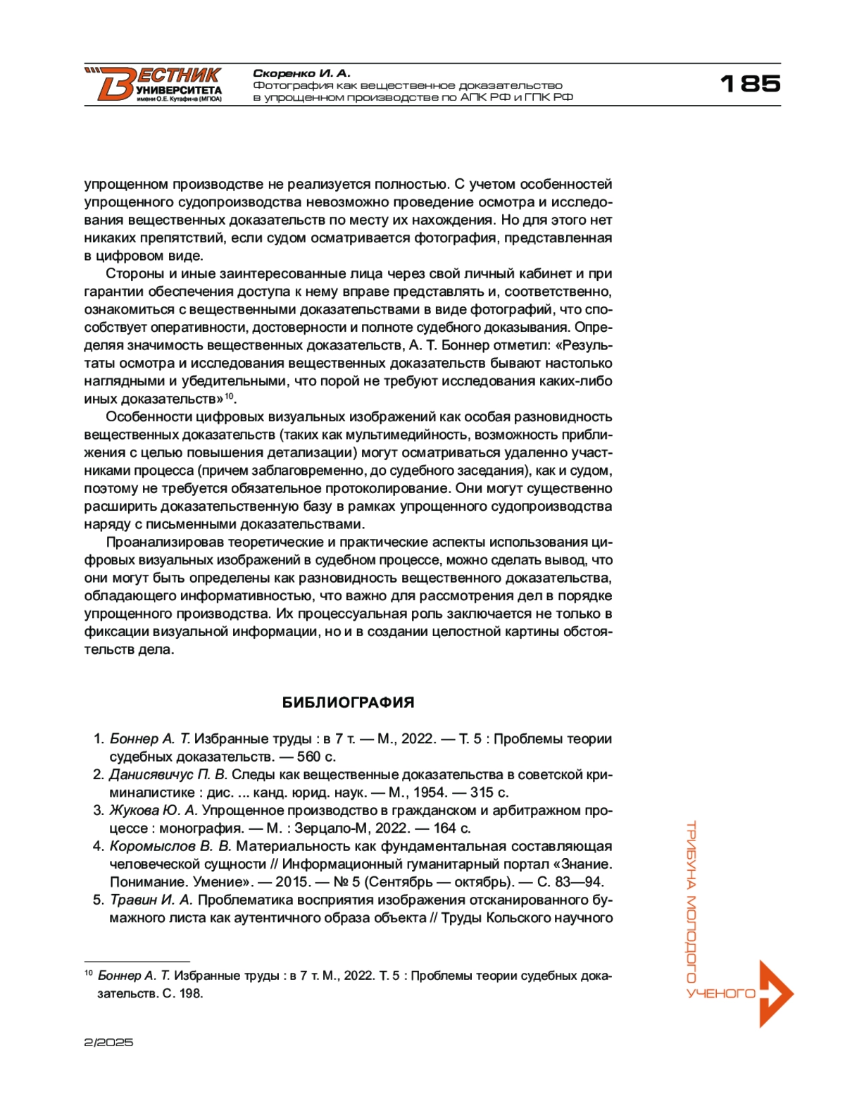 1. Боннер А. Т. Избранные труды : в 7 т. - М., 2022. - Т. 5 : Проблемы теории судебных доказательств. - 560 с.