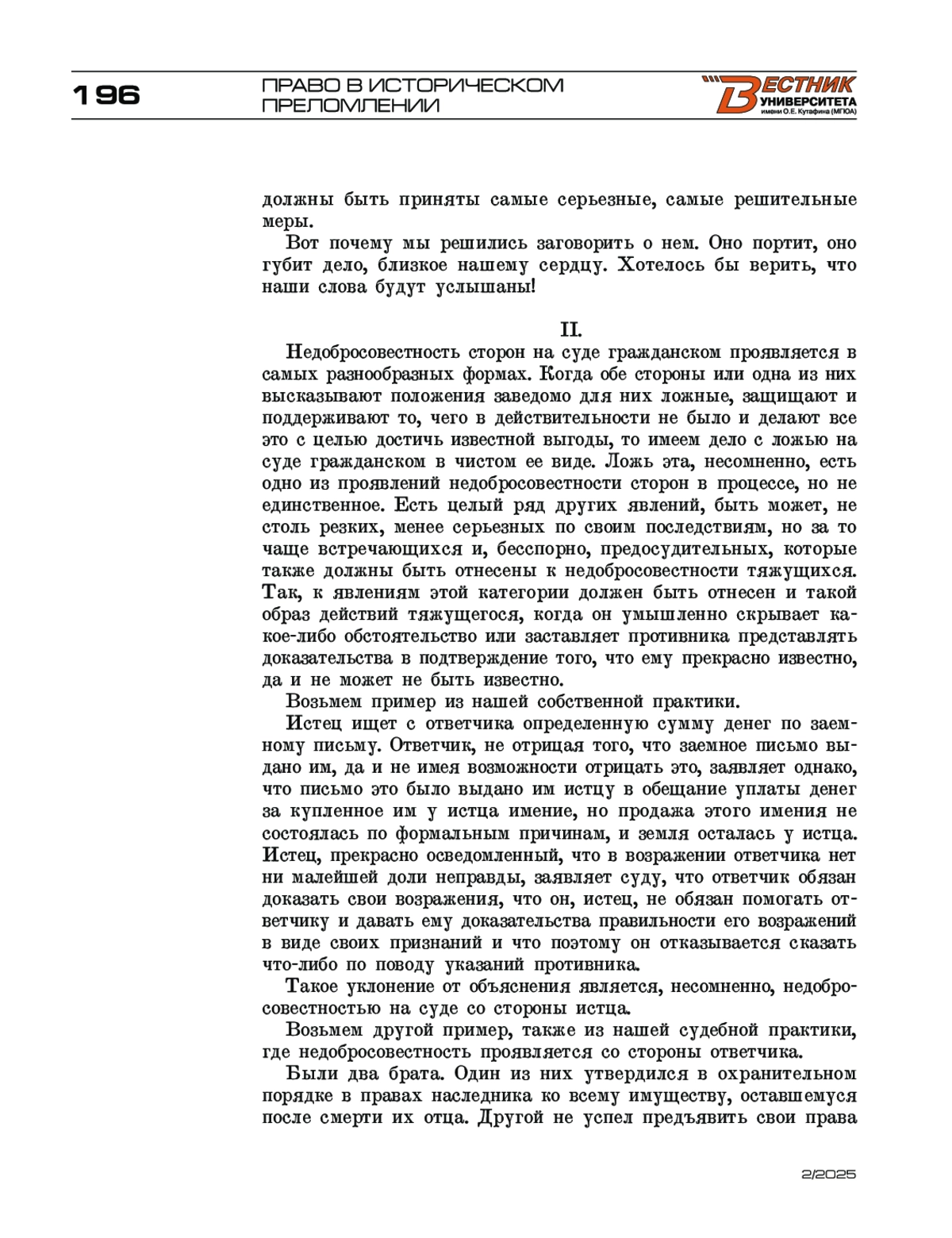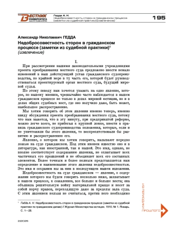 Для цитирования: Гедда А. Н. Недобросовестность сторон в гражданском процессе (заметки из судебной практики) (извлечение). Вестник Университета имени О. Е. Кутафина (МГЮА). 2025;(2):194-204.