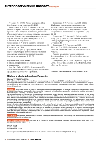 63. Тендрякова, М. В. (2022). Антропология детства. Прошлое о современности. СПб.: Образовательные проекты.